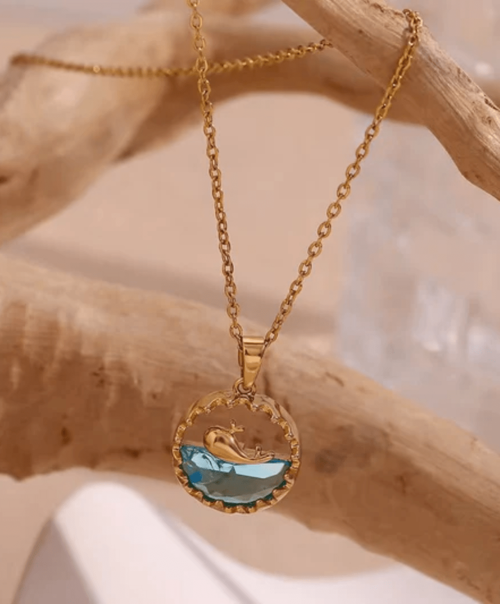 Dainty Whale Blue Zircon Sea Pendant