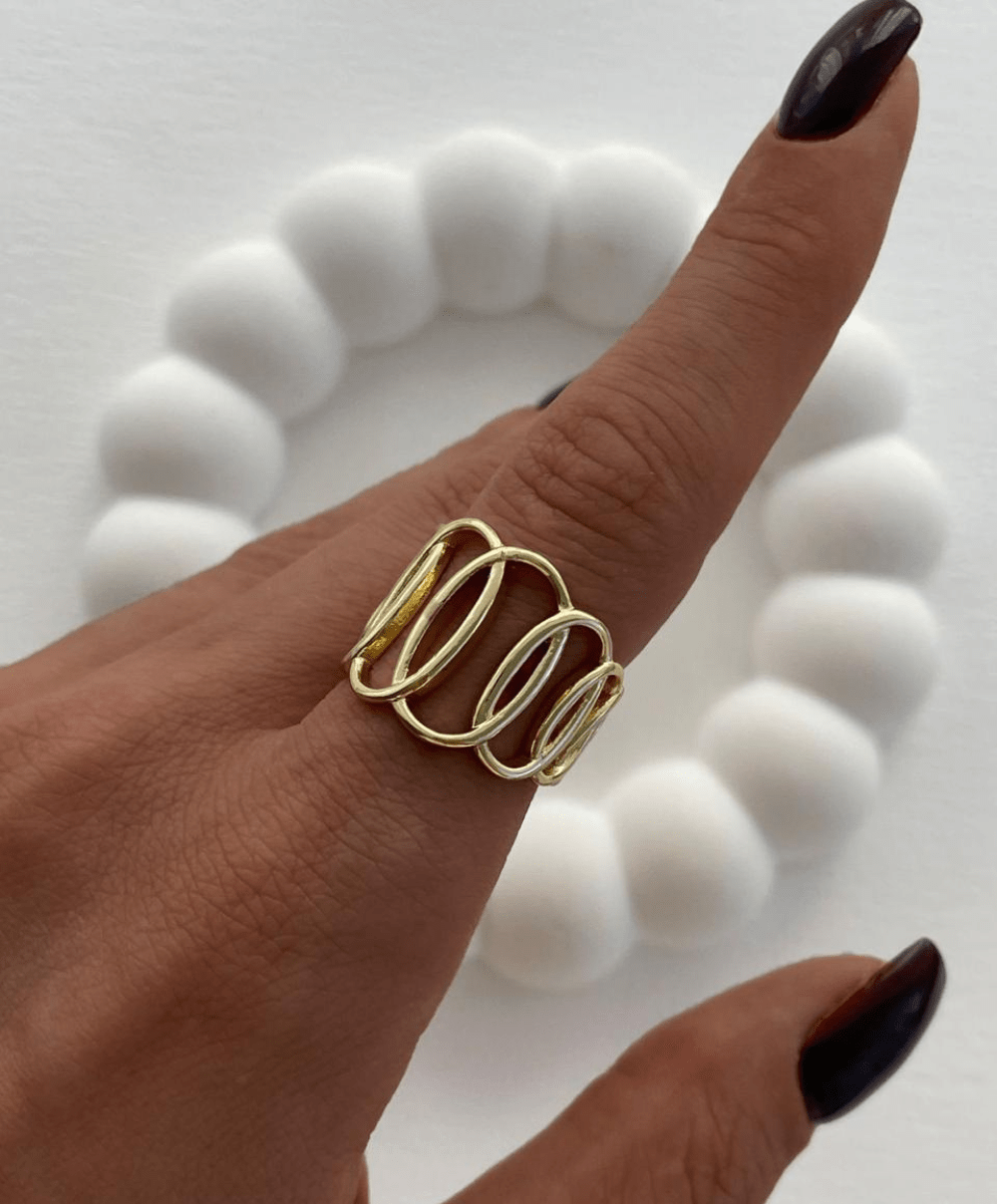 Gold tone silver swirl ring